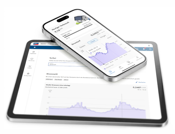 Wählen Sie den Tariftyp einmalig im Sunny Portal. Der Sunny Home Manager 2.0 übernimmt alles Weitere: optimiertes Laden von Elektrofahrzeugen, Wärmepumpen und Warmwassersteuerung, kompatible Haushaltsgeräte und Batteriespeicher, immer zu den günstigsten Zeiten des Tages.