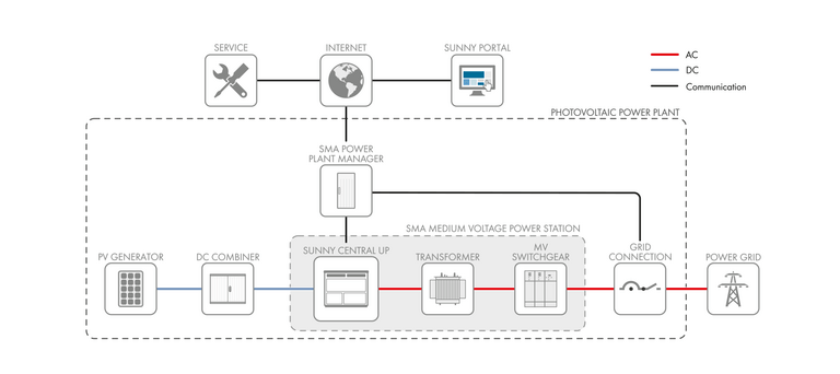 Der Sunny Central UP ist unser leistungsstärkster Wechselrichter mit bis zu 4600 kVA und bildet das Herzstück der Medium Voltage Power Station.