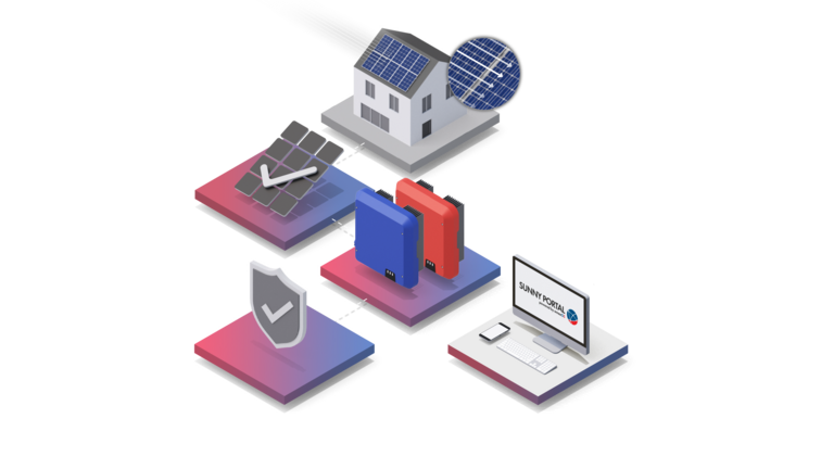 L’onduleur SMA de la famille Sunny Tripower ou Sunny Boy est le cœur de votre SMA Home Energy Solution. Il transforme le courant continu généré sur le toit par l’installation photovoltaïque en courant alternatif, tel qu’il est nécessaire au sein du foyer et dans le réseau électrique public. Ce faisant, il veille à une utilisation optimale de l’énergie, afin de vous permettre d’acheter le moins de courant supplémentaire possible sur le réseau électrique public. Même en cas d’ombrage, des technologies innovantes permettent une utilisation optimale de l’énergie fournie par les panneaux. Avec Sunny Portal ou via l'application mobile SMA Energy, vous gardez toujours un œil sur votre production énergétique.