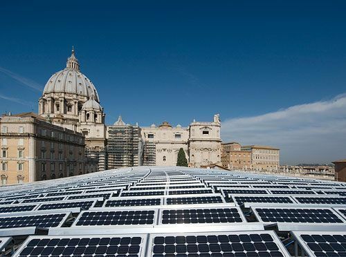 The system, which was installed on the football-field-sized roof of the Paolo VI Papal audience hall, has a total power output of about 220 kilowatts. 2,394 solar modules will generate up to 300 megawatt-hours of electricity per year, roughly corresponding to the yearly need of 100 households.