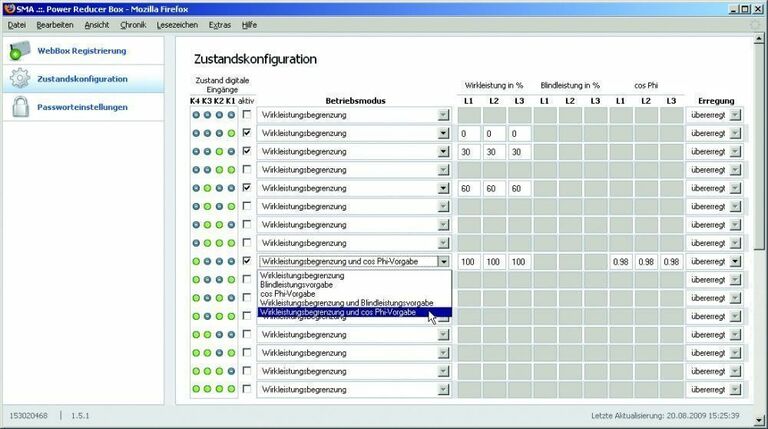 16 parametrierbare Stufen für die Wirkleistungsbegrenzung oder die Vorgabe von Blindleistungserzeugung
