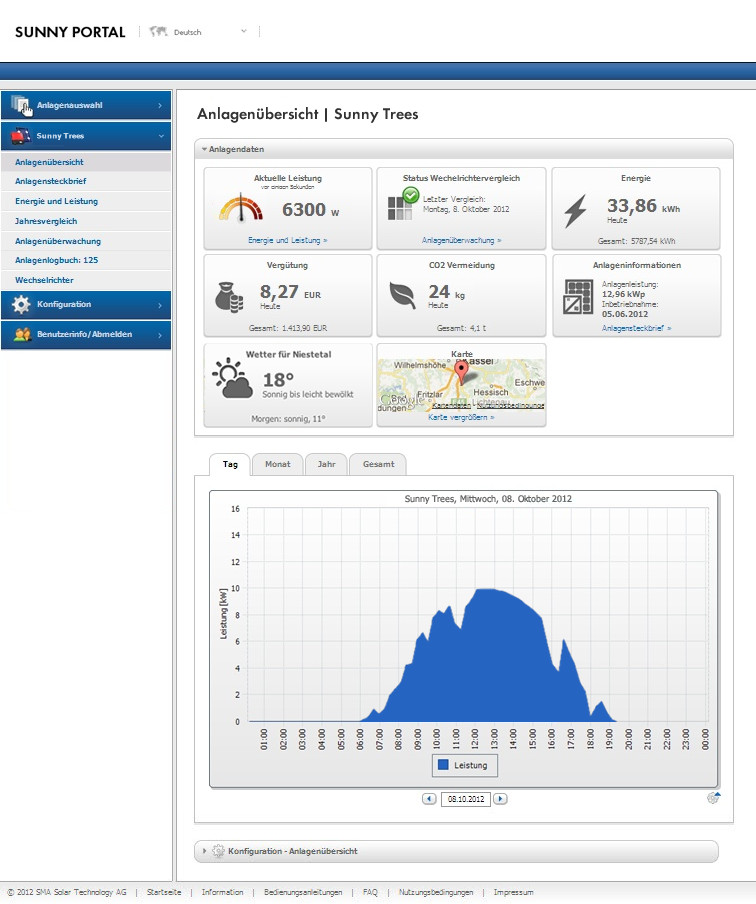 Nach der schnellen Registrierung in Sunny Portal ist schon erstmaliges Abrufen der wichtigsten Anlagendaten möglich